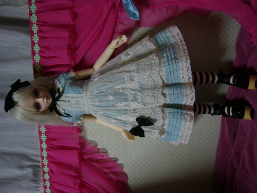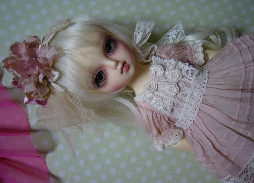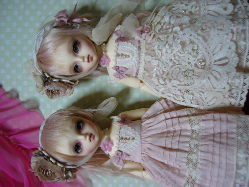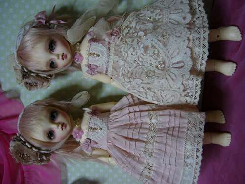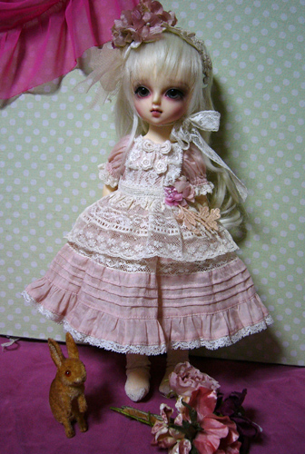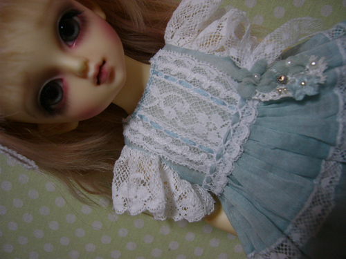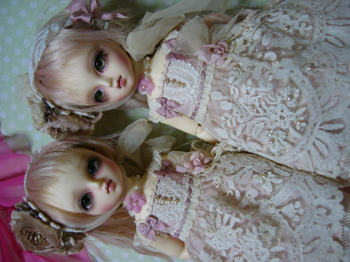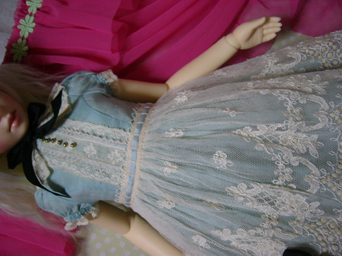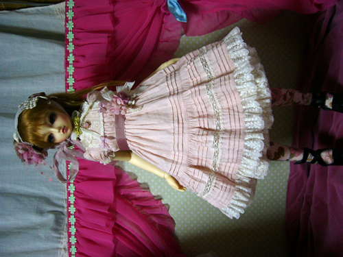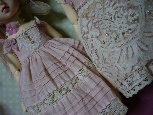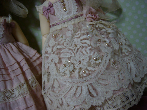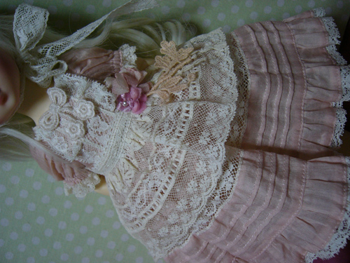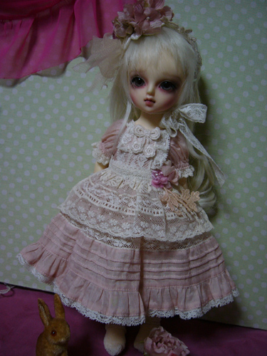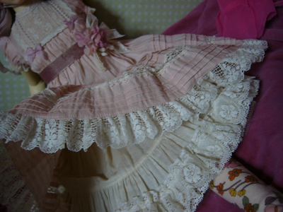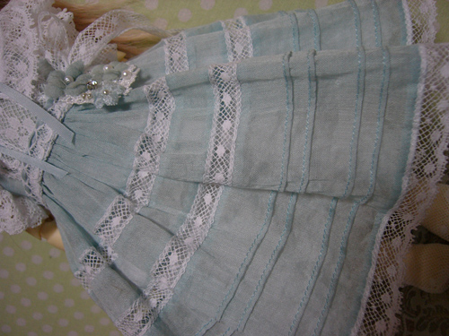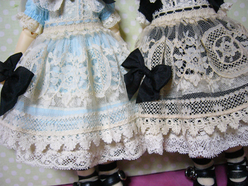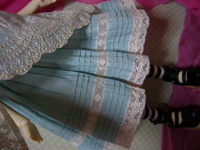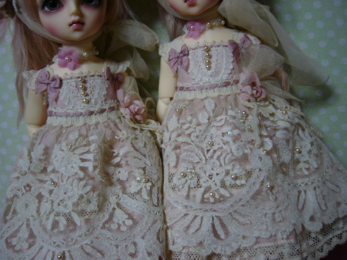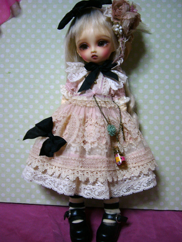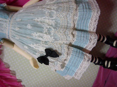 わかりにくいけど、スカート部分のレースは、上に貼ってあるのではなく、透かしてあるので、ひっぱらないでください。。。