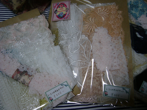 私のレースではないのですが、ご近所のマダムのコレクション(?)のレースを京都の桃源郷さんというお店に期間限定(7月23日土曜)まで置いていただいてます。
