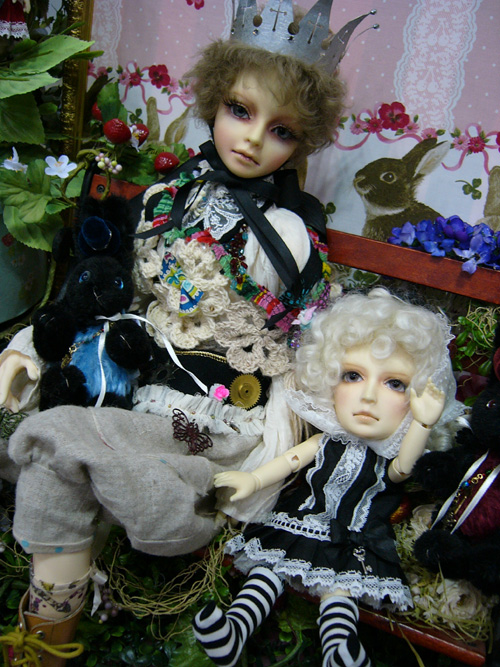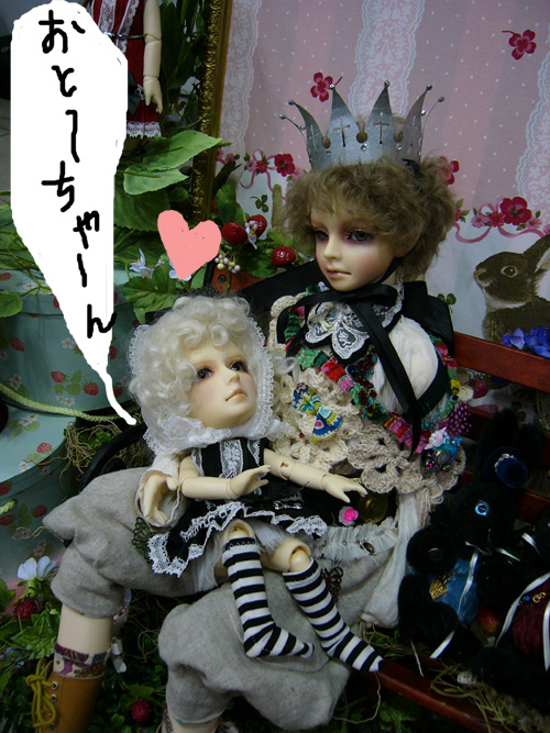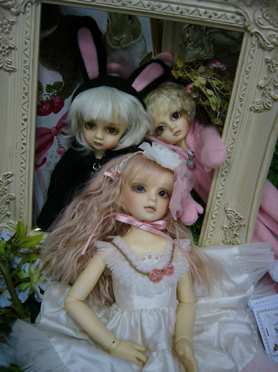 うちの妖怪A子’Sとおそろいのメイクをして双子でモデルをしようと思っていたアリスさんが、予定の4月中旬に届かず、ドルショ出発の前日に入荷というアクシデントでモデルが間に合わずデスプレー案を一から変えなければいけないとパニックになっていたらbon氏がそっと貸してくれました。本当にありがとおおお!!