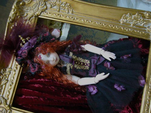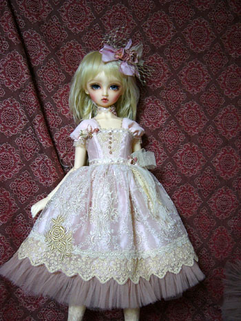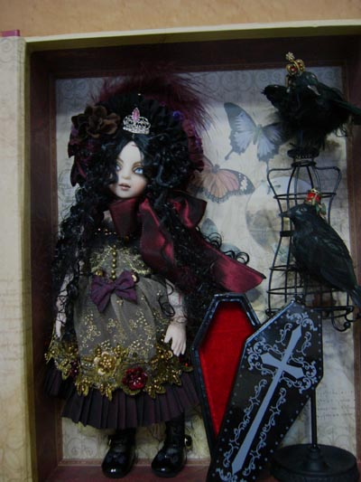 いつもイベントで作ってる「ダーク仏壇服をゴージャスにしてヤフオクに出すような感じ〜〜」というオーダーだったのでせっせと作って、服が出来て、あと頭物とか小物を残すだけ!っていう時になって人形展のテーマが「プリンスとプリンセスのお茶会」ってな事を聞かされましたv
