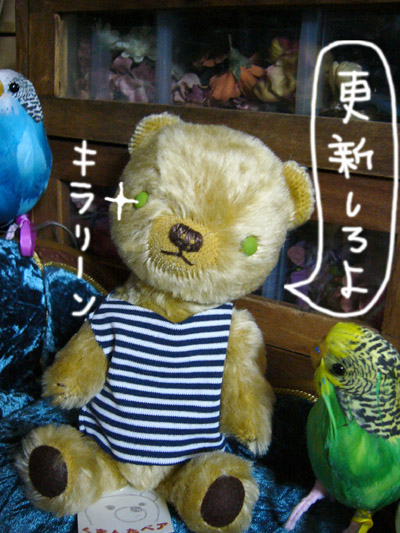 日記のネタ的には、チビビスクの1日お人形教室に行ってきたり、クルーズは行か(け)なかったけど、行った人の家にキニヒネチームでホラービデオを持って押し掛けていっていろいろ話聞いたり、次の日もカスタマ〜さんやデ〜ラ〜さん達と遊んでもらったり、お友達の創作人形の服を作らされていたり、テディベア展に行ったり、、、とドールネタはたんまりあるのですが、、、