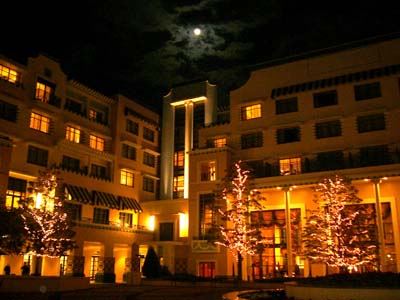 で、ホテルに帰ろうとフラフラしてたら、なんか、キラキラしてて、月もまんまるでかわいかったのでパチリ。