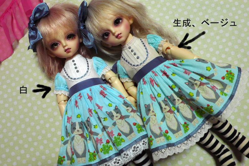 持っていくお洋服はSD女の子サイズで生成リボンのが16,000円で水色リボンのが17,000円です。